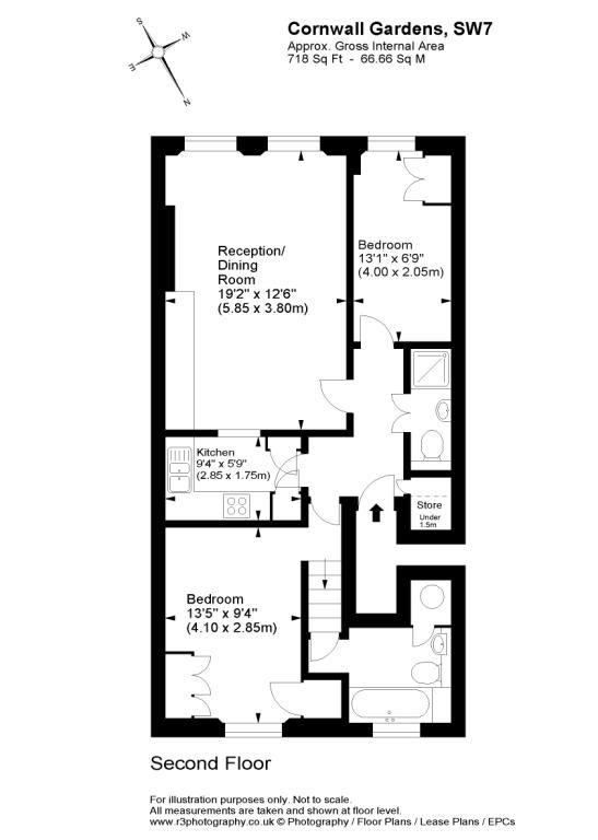 This two bedroom second floor apartment benefits from having wooden floors throughout with lovely south facing views over the communal gardens. The flat is conveniently located close to amenities of Gloucester Road and High Street Kensington.