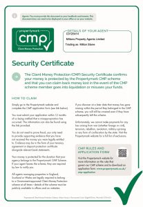 Client money protection (CMP) provided by Arla Propertymark; propertymark.co.uk