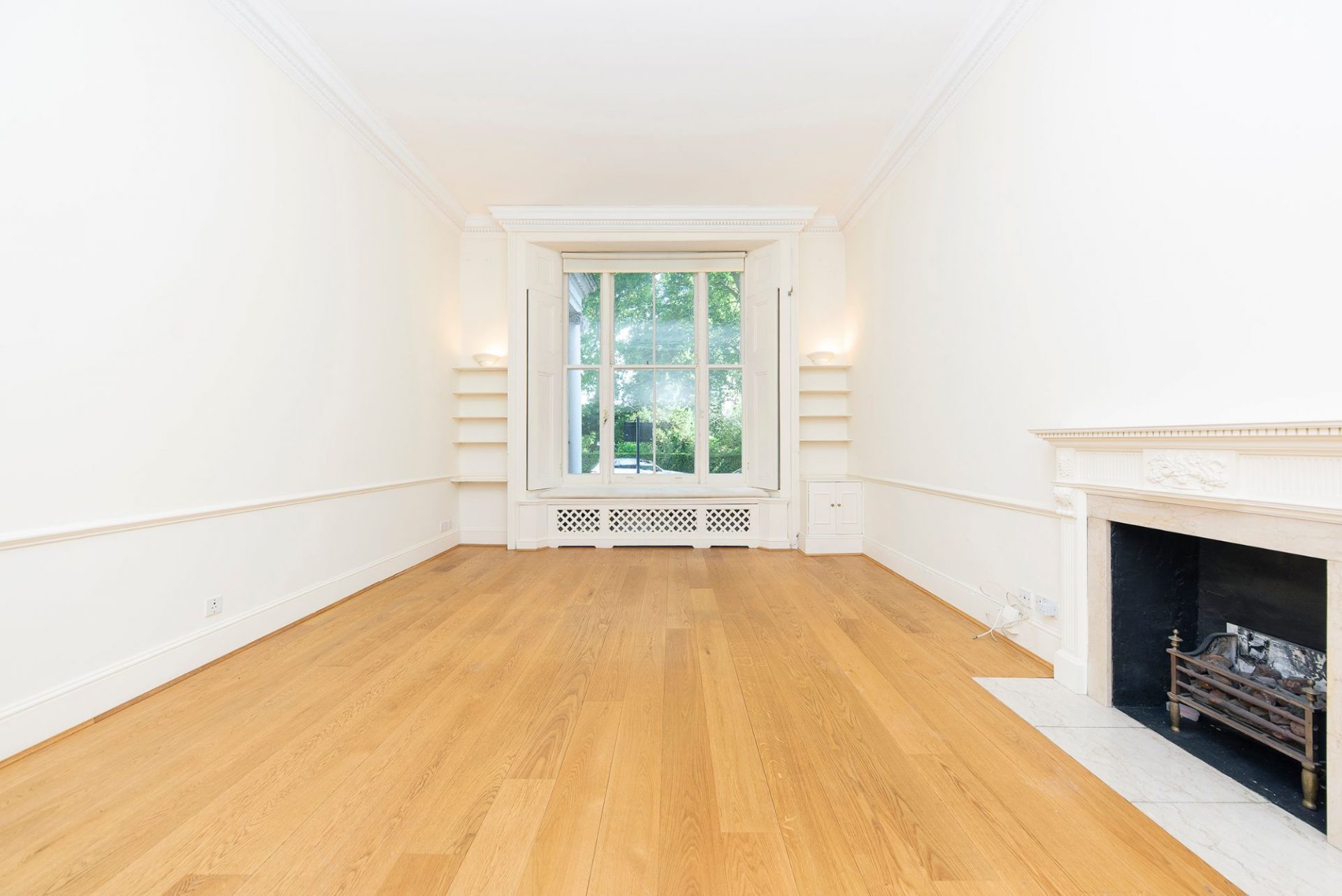 With wooden floors and high ceilings throughout, the property features a large reception room with plenty of natural light and views of the communal gardens, a separate kitchen, two bedrooms with plenty of storage space, two bathrooms and a private patio.